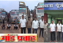 🚨 पूंजीपथरा पुलिस ने सामारूमा मेन रोड पर घेराबंदी कर पकड़े कबाड़ से लदे ट्रक🚨…