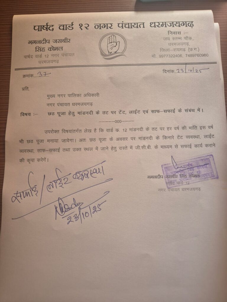 ЁЯМЕ рдЫрда рдкреВрдЬрд╛ рдХреА рддреИрдпрд╛рд░реА рдХреЛ рд▓реЗрдХрд░ рдирдЧрд░ рдкрдВрдЪрд╛рдпрдд рд╕реЗ рдХреА рдЧрдИ рдорд╛рдВрдЧ