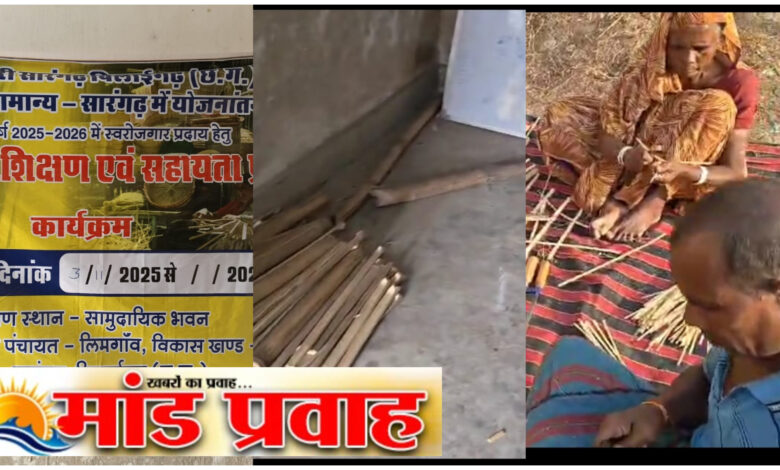 рд╕рд╛рд░рдВрдЧрдврд╝ред рд╡рд┐рд╢реЗрд╖ рдкрд┐рдЫрдбрд╝реА рдЬрдирдЬрд╛рддрд┐ рдХреЗ рдкрд░рд┐рд╡рд╛рд░реЛрдВ рдХреЛ рдЖрддреНрдордирд┐рд░реНрднрд░ рдмрдирд╛рдиреЗ рдХреЗ рдЙрджреНрджреЗрд╢реНрдп рд╕реЗ рдЫрддреНрддреАрд╕рдЧрдврд╝ рд╕рд░рдХрд╛рд░ рдХреЗ рд╡рди рд╡рд┐рднрд╛рдЧ рджреНрд╡рд╛рд░рд╛ рдмрд╛рдВрд╕ рд╢рд┐рд▓реНрдкрдХрд▓рд╛ рдПрд╡рдВ рдкреНрд░рд╢рд┐рдХреНрд╖рдг рдХрд╛рд░реНрдпрд╢рд╛рд▓рд╛ рд╢реБрд░реВ рдХрд░рдиреЗ рдХрд╛ рджрд╛рд╡рд╛ рдХрд┐рдпрд╛ рдЧрдпрд╛ рд╣реИред рд▓рд┐рдордЧрд╛рдВрд╡ рдореЗрдВ рдХрд░реАрдм 8 рд▓рд╛рдЦ рд░реБрдкрдпреЗ рдХреА рд▓рд╛рдЧрдд рд╕реЗ 45 рджрд┐рдиреЛрдВ рдХрд╛ рдпрд╣ рдкреНрд░рд╢рд┐рдХреНрд╖рдг 3 рдирд╡рдВрдмрд░ рд╕реЗ рд╢реБрд░реВ рд╣реЛрдирд╛ рдмрддрд╛рдпрд╛ рдЬрд╛ рд░рд╣рд╛ рд╣реИ, рд▓реЗрдХрд┐рди рдЬрдореАрди рдкрд░ рд╕реНрдерд┐рддрд┐ рдмрд┐рд▓реНрдХреБрд▓ рдЙрд▓рдЯ рд╣реИред рдкреНрд░рд╢рд┐рдХреНрд╖рдг рд╢реБрд░реВ рд╣реБрдП 15 рджрд┐рди рдмреАрдд рдЪреБрдХреЗ рд╣реИрдВ, рдмрд╛рд╡рдЬреВрдж рдЗрд╕рдХреЗ рдкреНрд░рд╢рд┐рдХреНрд╖рдг рдХреЗрдВрджреНрд░ рдкрд░ рдПрдХ рднреА рдкреНрд░рд╢рд┐рдХреНрд╖рд╛рд░реНрдереА рдореМрдЬреВрдж рдирд╣реАрдВ рдорд┐рд▓рд╛ред