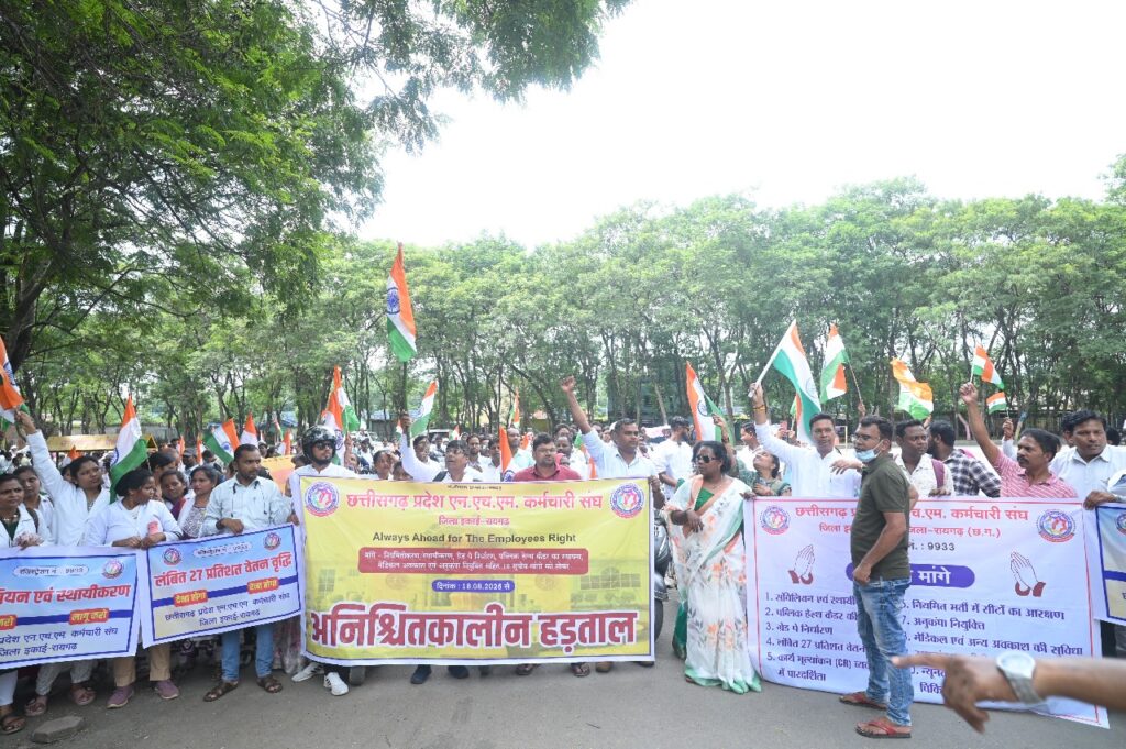 рдПрдирдПрдЪрдПрдо рдХрд░реНрдордЪрд╛рд░реА рд╕рдВрдШ, рд░рд╛рдпрдЧрдврд╝ рдХрд╛ рдХрд╣рдирд╛ рд╣реИ, тАЬрд╣рдо рд╢реМрдХ рд╕реЗ рдирд╣реАрдВ, рдордЬрдмреВрд░реА рдореЗрдВ рд╕рдбрд╝рдХ рдкрд░ рд╣реИрдВредтАЭ рд╕рд░рдХрд╛рд░ рджрд╛рд╡рд╛ рдХрд░рддреА рд╣реИ рдХрд┐ 10 рдореЗрдВ рд╕реЗ 5 рдорд╛рдВрдЧреЗрдВ рдкреВрд░реА рд╣реЛ рдЧрдИрдВ, рд▓реЗрдХрд┐рди рд▓рд┐рдЦрд┐рдд рдЖрджреЗрд╢ рдХрд╛ рдирд╛рдореЛрдирд┐рд╢рд╛рди рдирд╣реАрдВред рдХрд░реНрдордЪрд╛рд░рд┐рдпреЛрдВ рдХрд╛ рддрдВрдЬ рд╣реИтАФтАЬрд╕реНрд╡рд╛рд╕реНрдереНрдп рдордВрддреНрд░реА рдЬреА, рдЕрдЧрд░ рдорд╛рдВрдЧреЗрдВ рдкреВрд░реА рд╣реИрдВ, рддреЛ рдЖрджреЗрд╢ рджрд┐рдЦрд╛рдЗрдП, рдпрд╛ рдлрд┐рд░ рдЭреВрда рдХрд╛ рдвреЛрд▓ рдкреАрдЯрдирд╛ рдмрдВрдж рдХреАрдЬрд┐рдП!тАЭ рд╕реНрд╡рд╛рд╕реНрдереНрдп рд╡рд┐рднрд╛рдЧ рдХреЗ рдЕрдзрд┐рдХрд╛рд░реА рдордВрддреНрд░реА рдХреЛ рдЧреБрдорд░рд╛рд╣ рдХрд░ рд░рд╣реЗ рд╣реИрдВ, рдФрд░ рдЬрдирддрд╛ рдХреЗ рд╕рд╛рдордиреЗ тАЬрдореЛрджреА рдХреА рдЧрд╛рд░рдВрдЯреАтАЭ рдХреЛ рдХреЛрд░реА рдмрд╛рддреЗрдВ рдмрдирд╛рдХрд░ рдкреЗрд╢ рдХрд┐рдпрд╛ рдЬрд╛ рд░рд╣рд╛ рд╣реИред