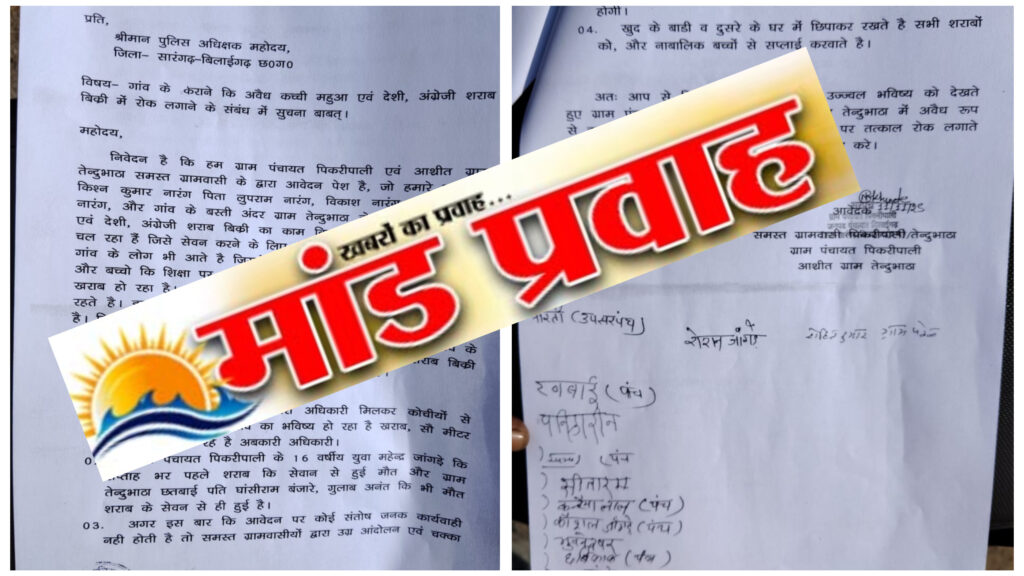 рдЧреНрд░рд╛рдо рдкрдВрдЪрд╛рдпрдд рдкрд┐рдХрд░реАрдкрд╛рд▓реА рдПрд╡рдВ рдЖрд╢реНрд░рд┐рдд рдЧреНрд░рд╛рдо рддреЗрд▓реНрджреБрдорднрд╛рда рдХреЗ рдЧреНрд░рд╛рдореАрдгреЛрдВ рдиреЗ рдХреНрд╖реЗрддреНрд░ рдореЗрдВ рдЕрд╡реИрдз рдХрдЪреНрдЪреА рдорд╣реБрдЖ рд╢рд░рд╛рдм, рджреЗрд╕реА рдПрд╡рдВ рдЕрдВрдЧреНрд░реЗрдЬреА рд╢рд░рд╛рдм рдХреА рдЦреБрд▓реЗрдЖрдо рдмрд┐рдХреНрд░реА рдкрд░ рд░реЛрдХ рд▓рдЧрд╛рдиреЗ рдХреА рдорд╛рдВрдЧ рдХрд░рддреЗ рд╣реБрдП рдЬрд┐рд▓рд╛ рдкреБрд▓рд┐рд╕ рдЕрдзреАрдХреНрд╖рдХ рдХреЛ рдПрдХ рд▓рд┐рдЦрд┐рдд рдЖрд╡реЗрджрди рд╕реМрдВрдкрд╛ рд╣реИред рдЧреНрд░рд╛рдореАрдгреЛрдВ рдХрд╛ рдХрд╣рдирд╛ рд╣реИ рдХрд┐ рдЕрд╡реИрдз рд╢рд░рд╛рдм рдХрд╛ рдХрд╛рд░реЛрдмрд╛рд░ рдЧрд╛рдВрд╡ рдФрд░ рдЖрд╕рдкрд╛рд╕ рдХреЗ рдЗрд▓рд╛рдХреЛрдВ рдореЗрдВ рддреЗрдЬреА рд╕реЗ рдлреИрд▓ рд░рд╣рд╛ рд╣реИ, рдЬрд┐рд╕рд╕реЗ рд╕рд╛рдорд╛рдЬрд┐рдХ рд╡рд╛рддрд╛рд╡рд░рдг рдмрд┐рдЧрдбрд╝рддрд╛ рдЬрд╛ рд░рд╣рд╛ рд╣реИ рдФрд░ рдпреБрд╡рд╛рдУрдВ рд╕реЗ рд▓реЗрдХрд░ рд╡реГрджреНрдзреЛрдВ рддрдХ рдЗрд╕ рдирд╢реЗ рдХреА рдЪрдкреЗрдЯ рдореЗрдВ рдЖ рдЪреБрдХреЗ рд╣реИрдВред