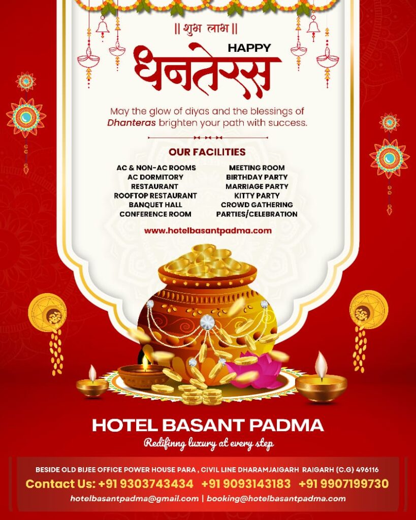 рдзрдирддреЗрд░рд╕ рд╣рдореЗрдВ рдпрд╣ рд╕рд┐рдЦрд╛рддрд╛ рд╣реИ рдХрд┐ рдЕрд╕рд▓реА тАШрдзрдитАЩ рдХреЗрд╡рд▓ рд╡рд╕реНрддреБрдУрдВ рдХрд╛ рдирд╣реАрдВ, рдмрд▓реНрдХрд┐ рд╕реНрд╡рд╛рд╕реНрдереНрдп, рд╕рджреНрднрд╛рд╡ рдФрд░ рд╕рдВрддреЛрд╖ рдХрд╛ рд╣реЛрддрд╛ рд╣реИред рдЗрд╕ рджрд┐рди рд╣рдо рд╕рдмрдХреЛ рдЕрдкрдиреЗ рдЬреАрд╡рди рдореЗрдВ рд╕рдВрддреБрд▓рди рд╕реНрдерд╛рдкрд┐рдд рдХрд░рдиреЗ рдХрд╛ рд╕рдВрдХрд▓реНрдк рд▓реЗрдирд╛ рдЪрд╛рд╣рд┐рдП тАФ рддрд╛рдХрд┐ рдШрд░ рдореЗрдВ рд░реЛрд╢рдиреА рд╣реА рдирд╣реАрдВ, рдорди рдореЗрдВ рднреА рдкреНрд░рдХрд╛рд╢ рдмрдирд╛ рд░рд╣реЗред