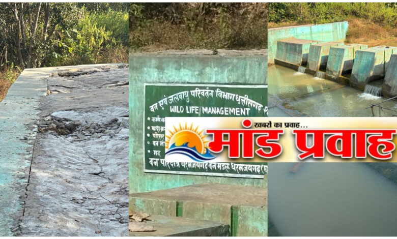 рдзрд░рдордЬрдпрдЧрдврд╝ рд░реЗрдВрдЬ рдЕрдВрддрд░реНрдЧрдд рд╡рди рд╡рд┐рднрд╛рдЧ рджреНрд╡рд╛рд░рд╛ рдмрдирд╛рдП рдЧрдП рдбреЗрдо рдХреЛ рд▓реЗрдХрд░ рдЧрдВрднреАрд░ рд╕рд╡рд╛рд▓ рдЦрдбрд╝реЗ рд╣реЛ рдЧрдП рд╣реИрдВред рд╡рд┐рднрд╛рдЧ рдиреЗ рдареЗрдХреЗрджрд╛рд░ рд╕реЗ рд▓рд╛рдЦреЛрдВ рд░реБрдкрдпреЗ рдХреА рд▓рд╛рдЧрдд рд╕реЗ рдбреЗрдо рдХрд╛ рдирд┐рд░реНрдорд╛рдг рддреЛ рдХрд░рд╛ рджрд┐рдпрд╛, рд▓реЗрдХрд┐рди рд╕реНрдерд▓ рдкрд░ рд▓рдЧрд╛рдП рдЧрдП рд╕реВрдЪрдирд╛ рдкрдЯрд▓ рдореЗрдВ рд▓рд╛рдЧрдд рд░рд╛рд╢рд┐, рд╕реНрд╡реАрдХреГрдд рдзрдирд░рд╛рд╢рд┐ рдФрд░ рддрдХрдиреАрдХреА рд╡рд┐рд╡рд░рдг рдХрд╛ рдЙрд▓реНрд▓реЗрдЦ рдирджрд╛рд░рдж рд╣реИред