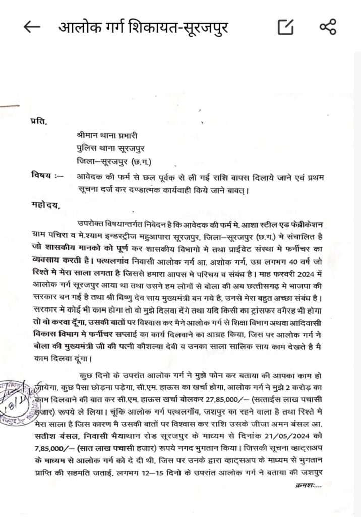 “рдкреНрд░рджреЗрд╢ рдореЗрдВ рд╣рдорд╛рд░реА рд╕рд░рдХрд╛рд░ рд╣реИ, рдЬрд╢рдкреБрд░ рд╕реЗ рд░рд╛рдпрдкреБрд░ рддрдХ рд╕реАрдзреА рд╕реЗрдЯрд┐рдВрдЧ рд╣реИ, рдордВрддреНрд░реА рд╣рдорд╛рд░реЗ рдЕрдкрдиреЗ рд╣реИрдВтАж рдЯреЗрдВрдбрд░ рдкрдХреНрдХрд╛ рд╕рдордЭреЛ!”
