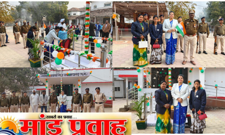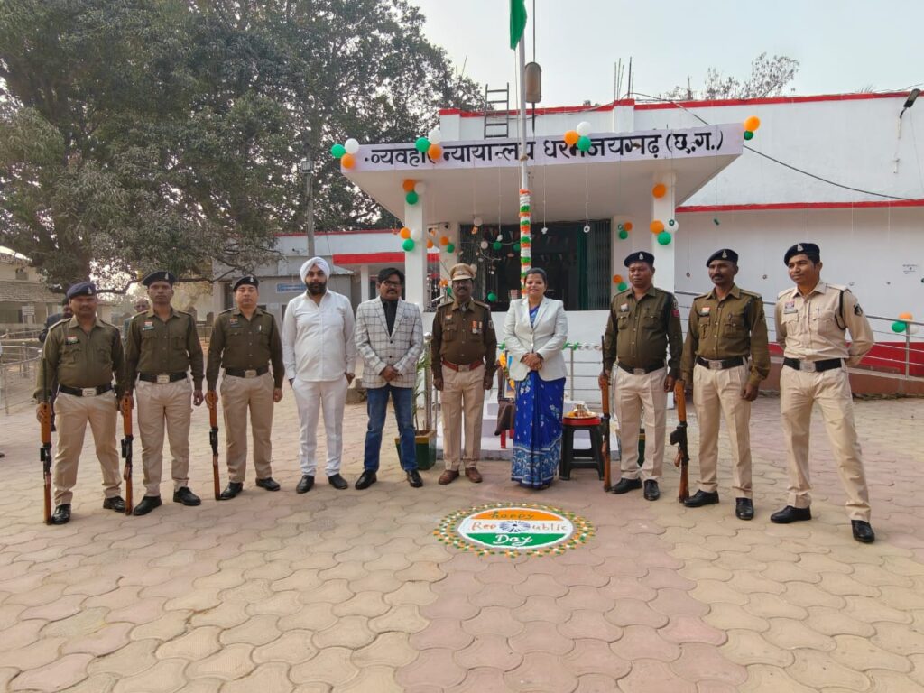 рдзрд░рдордЬрдпрдЧрдврд╝ | рдЧрдгрддрдВрддреНрд░ рджрд┐рд╡рд╕ рдХреЗ рдкрд╛рд╡рди рдЕрд╡рд╕рд░ рдкрд░ рдзрд░рдордЬрдпрдЧрдврд╝ рдиреНрдпрд╛рдпрд╛рд▓рдп рдкрд░рд┐рд╕рд░ рджреЗрд╢рднрдХреНрддрд┐ рдФрд░ рд╕рдВрд╡реИрдзрд╛рдирд┐рдХ рдЧрд░рд┐рдорд╛ рдХреЗ рд╡рд╛рддрд╛рд╡рд░рдг рд╕реЗ рдУрдд-рдкреНрд░реЛрдд рдирдЬрд░ рдЖрдпрд╛ред рдЗрд╕ рдЕрд╡рд╕рд░ рдкрд░ рдзрд░рдордЬрдпрдЧрдврд╝ рд╡реНрдпрд╡рд╣рд╛рд░ рдиреНрдпрд╛рдпрд╛рдзреАрд╢ рдорд╣реЛрджрдпрд╛ рд╢реНрд░реАрдорддреА рдкреНрд░рд┐рдпрд╛ рд░рдЬрдХ рджреНрд╡рд╛рд░рд╛ рд╡рд┐рдзрд┐рд╡рдд рддрд┐рд░рдВрдЧрд╛ рдзреНрд╡рдЬ рдлрд╣рд░рд╛рдпрд╛ рдЧрдпрд╛ред