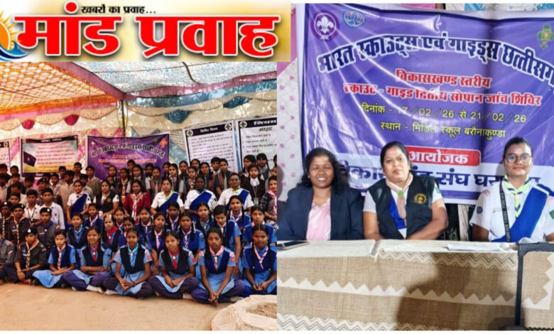 рдЫрд╛рд▓ (рд░рд╛рдпрдЧрдврд╝) : рд╕реНрдерд╛рдиреАрдп рдорд╛рдзреНрдпрдорд┐рдХ рд╢рд╛рд▓рд╛ рдмрд░реМрдирд╛ рдХреБрдВрдбрд╛ рдореЗрдВ рдЖрдпреЛрдЬрд┐рдд рдкрд╛рдВрдЪ рджрд┐рд╡рд╕реАрдп рд╡рд┐рдХрд╛рд╕рдЦрдВрдб рд╕реНрддрд░реАрдп рд╕реНрдХрд╛рдЙрдЯ рдЧрд╛рдЗрдб тАШрджреНрд╡рд┐рддреАрдп рд╕реЛрдкрд╛рдитАЩ рдкреНрд░рд╢рд┐рдХреНрд╖рдг рд╢рд┐рд╡рд┐рд░ рдХрд╛ рд╢рдирд┐рд╡рд╛рд░ рдХреЛ рдЙрддреНрд╕рд╛рд╣рдкреВрд░реНрдг рд╡рд╛рддрд╛рд╡рд░рдг рдореЗрдВ рд╡рд┐рдзрд┐рд╡рдд рд╕рдорд╛рдкрди рд╣реБрдЖред рдпрд╣ рд╢рд┐рд╡рд┐рд░ 17 рд╕реЗ 21 рдлрд░рд╡рд░реА 2026 рддрдХ рдЬрд┐рд▓рд╛ рдХрдорд┐рд╢реНрдирд░ рдХреЗ рдирд┐рд░реНрджреЗрд╢рд╛рдиреБрд╕рд╛рд░ рдПрд╡рдВ рдЬрд┐рд▓рд╛ рд╕рд╣рд╛рдпрдХ рдЖрдпреБрдХреНрдд рдХреЗ рдорд╛рд░реНрдЧрджрд░реНрд╢рди рдореЗрдВ рд╡рд╛рд░реНрд╖рд┐рдХ рдХрд╛рд░реНрдпрдХреНрд░рдо рдХреЗ рддрд╣рдд рдЖрдпреЛрдЬрд┐рдд рдХрд┐рдпрд╛ рдЧрдпрд╛ред