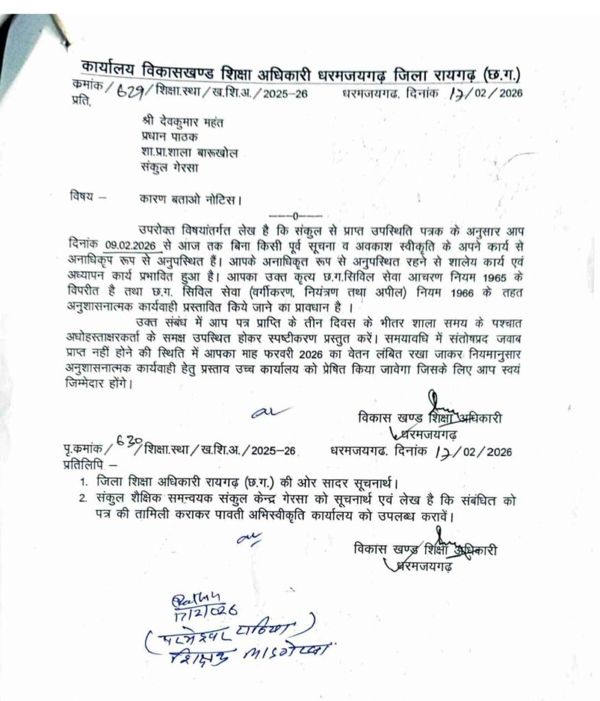 рдорд╛рдорд▓рд╛ рд╡рд┐рдХрд╛рд╕рдЦрдВрдб рд╢рд┐рдХреНрд╖рд╛ рдЕрдзрд┐рдХрд╛рд░реА рдПрд╕.рдХреЗ. рд╕рд┐рджрд╛рд░ рдХреЗ рд╕рдВрдЬреНрдЮрд╛рди рдореЗрдВ рд▓рд╛рдпрд╛ рдЧрдпрд╛ред рдЙрдирдХрд╛ рдХрд╣рдирд╛ рд╣реИ рдХрд┐ рдкреНрд░рдХрд░рдг рдкрд╣рд▓реЗ рд╕реЗ рд╕рдВрдЬреНрдЮрд╛рди рдореЗрдВ рд╣реИ рдФрд░ 17 рдлрд░рд╡рд░реА рдХреЛ рдХрд╛рд░рдг рдмрддрд╛рдУ рдиреЛрдЯрд┐рд╕ рдЬрд╛рд░реА рдХрд┐рдпрд╛ рдЬрд╛ рдЪреБрдХрд╛ рд╣реИред