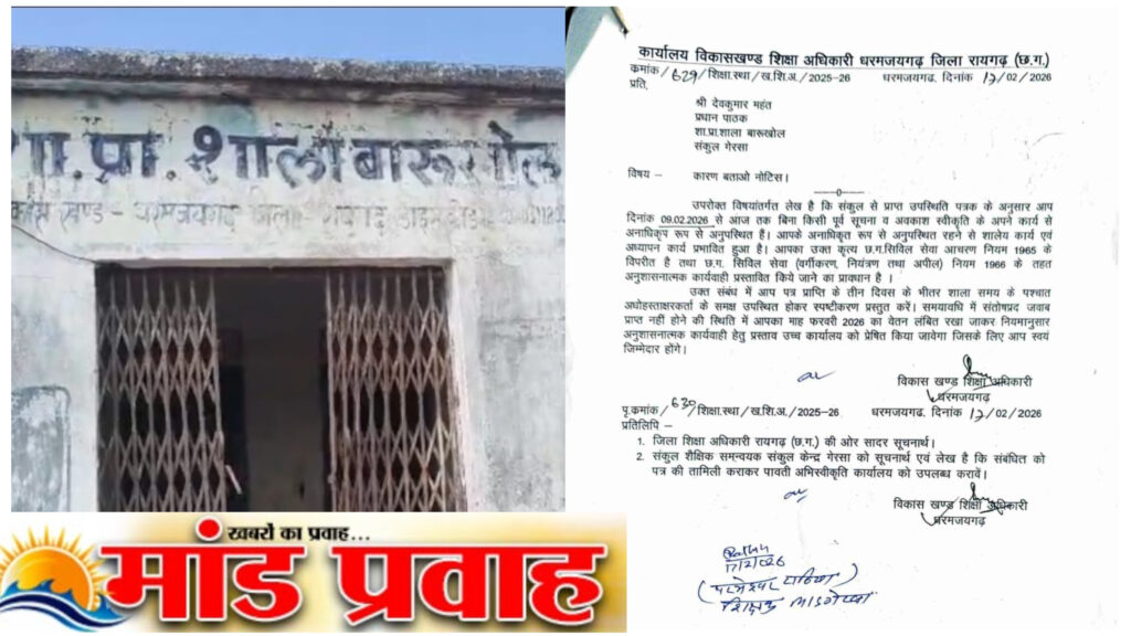 рдзрд░рдордЬрдпрдЧрдврд╝ред рд╡рд┐рдХрд╛рд╕рдЦрдВрдб рдзрд░рдордЬрдпрдЧрдврд╝ рдХреЗ рдЧреНрд░рд╛рдо рдкрдВрдЪрд╛рдпрдд рдирд╛рдЧрджрд░рд╣рд╛ рдЕрдВрддрд░реНрдЧрдд рдЖрд╢реНрд░рд┐рдд рдЧреНрд░рд╛рдо рдмрд╛рд░реВрдЦреЛрд▓ рдХреА рдкреНрд░рд╛рдердорд┐рдХ рд╢рд╛рд▓рд╛ рдЗрди рджрд┐рдиреЛрдВ рдЧрдВрднреАрд░ рдЕрд╡реНрдпрд╡рд╕реНрдерд╛ рдФрд░ рд▓рд╛рдкрд░рд╡рд╛рд╣реА рдХрд╛ рдкреНрд░рддреАрдХ рдмрди рдЧрдИ рд╣реИред рдпрд╣рд╛рдВ рдкрджрд╕реНрде рдкреНрд░рдзрд╛рди рдкрд╛рдардХ рджреЗрд╡ рдХреБрдорд╛рд░ рдорд╣рдВрдд рдкрд░ рд▓рдВрдмреЗ рд╕рдордп рд╕реЗ рд╡рд┐рджреНрдпрд╛рд▓рдп рд╕реЗ рдЕрдиреБрдкрд╕реНрдерд┐рдд рд░рд╣рдиреЗ рдХреЗ рдЖрд░реЛрдк рд▓рдЧреЗ рд╣реИрдВ, рдЬрд┐рд╕рд╕реЗ рдмрдЪреНрдЪреЛрдВ рдХреА рдкрдврд╝рд╛рдИ рдмреБрд░реА рддрд░рд╣ рдкреНрд░рднрд╛рд╡рд┐рдд рд╣реЛ рд░рд╣реА рд╣реИред рдпрд╣рд╛рдВ рджреЗрдЦреЗрдВ рд╡реАрдбрд┐рдпреЛ ЁЯСЗЁЯСЗ