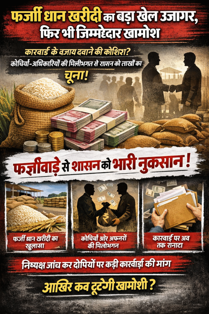 ЁЯЪиBIG SCAM NEWS:ЁЯЪи ЁЯФеЁЯФердлрд░реНрдЬреА рддрд░реАрдХреЗ рд╕реЗ рдзрд╛рди рдЦрд░реАрджреА рдХрд╛ рдорд╛рдорд▓рд╛ рдЙрдЬрд╛рдЧрд░, рдлрд┐рд░ рднреА рдЬрд┐рдореНрдореЗрджрд╛рд░реЛрдВ рдХреА рдЪреБрдкреНрдкреА рдкрд░ рдЙрдареЗ рд╕рд╡рд╛рд▓рдХрд╛рд░реНрд░рд╡рд╛рдИ рдХреЗ рдмрдЬрд╛рдп рджрдмрд╛рдиреЗ рдХреА рдХреЛрд╢рд┐рд╢? рдХреЛрдЪрд┐рдпреЛрдВ-рдЕрдзрд┐рдХрд╛рд░рд┐рдпреЛрдВ рдХреА рдорд┐рд▓реАрднрдЧрдд рд╕реЗ рд╢рд╛рд╕рди рдХреЛ рд▓рд╛рдЦреЛрдВ рдХрд╛ рдиреБрдХрд╕рд╛рди!рдкрдврд╝рд┐рдП рдЦрдмрд░редЁЯОпЁЯУвЁЯУвЁЯФ┤
