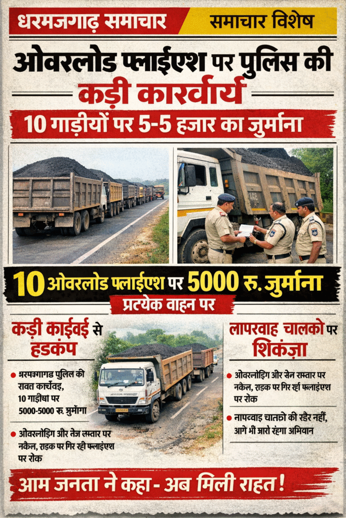 рдзрд░рдордЬрдпрдЧрдврд╝ рд╕реЗ рдЧреБрдЬрд░рдиреЗ рд╡рд╛рд▓реА рднрд╛рд░рддрдорд╛рд▓рд╛ рд╕рдбрд╝рдХ рдкрд░ рдЗрди рджрд┐рдиреЛрдВ рдлреНрд▓рд╛рдИрдПрд╢ рдкрд░рд┐рд╡рд╣рди рдХрд░рдиреЗ рд╡рд╛рд▓реЗ рд╡рд╛рд╣рдиреЛрдВ рдХреА рдордирдорд╛рдиреА рд▓рдЧрд╛рддрд╛рд░ рдмрдврд╝рддреА рдЬрд╛ рд░рд╣реА рдереАред рд╕рдбрд╝рдХреЛрдВ рдкрд░ рдмреЗрд▓рдЧрд╛рдо рджреМрдбрд╝ рд░рд╣реЗ рдпреЗ рд╡рд╛рд╣рди рди рд╕рд┐рд░реНрдл рдирд┐рдпрдореЛрдВ рдХреА рдзрдЬреНрдЬрд┐рдпрд╛рдВ рдЙрдбрд╝рд╛ рд░рд╣реЗ рдереЗ, рдмрд▓реНрдХрд┐ рдЖрдо рд▓реЛрдЧреЛрдВ рдХреА рд╕реБрд░рдХреНрд╖рд╛ рдХреЗ рд▓рд┐рдП рднреА рдЦрддрд░рд╛ рдмрди рдЪреБрдХреЗ рдереЗред рдпрд╣рд╛рдВ рджреЗрдЦреЗрдВ рд╡реАрдбрд┐рдпреЛ ….ЁЯСЗЁЯСЗЁЯСЗ