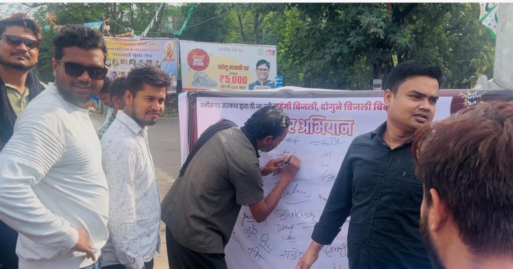 घरघोड़ा/रायगढ़। बढ़े हुए बिजली बिल और बिजली बिल हाफ योजना बंद किए जाने के विरोध में शुक्रवार को घरघोड़ा ब्लॉक में युवा कांग्रेस ने जोरदार प्रदर्शन किया। युवा नेता और जनप्रतिनिधि रहे उस्मान बेग के नेतृत्व में सैकड़ों कार्यकर्ता कारगिल चौक पर एकत्र हुए और हस्ताक्षर अभियान चलाने के साथ नुक्कड़ सभा का आयोजन किया।