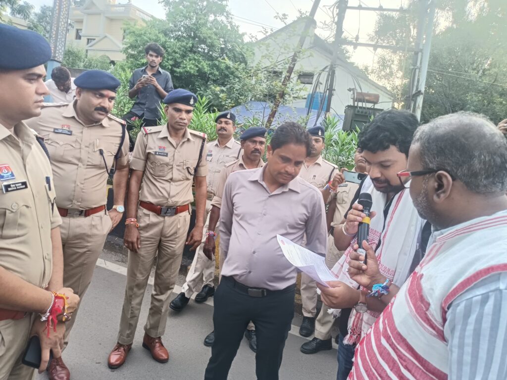 आदिवासी समाज के लोगों ने लगाए नारे: ” डॉ. अम्बेडकर अमर रहे” “बिरसा मुंडा की जय” और “एक तीर, एक कमान – आदिवासी एक समान” जैसे जोशीले नारों से रायपुर राजधानी में गूंज उठीं। धुमकुडिया उराॅव युवा समाज छत्तीसगढ के प्रदेशअध्यक्ष मनीष टोप्पो ने महामहिम राज्यपाल द्वारा भेजे गए अधिकारी को 10 बिन्दुओं पर आदिवासियों की समस्या एवं मांग पत्र समाज के सामने पड़कर सौंपा गया एंव स्वतंत्रता सेनानी भगवान बिरसा मुंडा जी की भव्य प्रतिमा रायपुर राजधानी बस स्टैंड भाटा गाँव के सामने सड़क पर स्थापित करने का आवेदन दिया।जिसमें संगठन के जिलाध्यक्ष अजय कुजूर एवं संगठन के पदाधिकारी, वक्ता गण नीलम टोप्पो, विक्रम सिंह लकड़ा, सूशील लकड़ा, रश्मी किसकोट्टा, आमोद कुजूर, कन्ता क्रेरकेटा, संजय इक्का, अविरला इक्का, उर्मिला क्रेरकेटा, अमित इक्का, जैनित खलखो , अभय क्रेरकेटा, जय प्रकाश उपस्थित रहे।